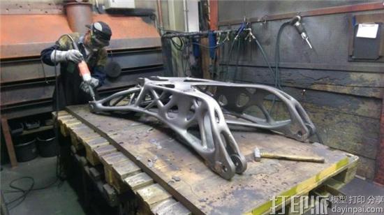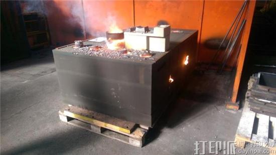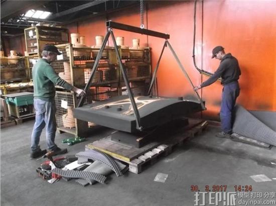 打印完成之后,操作人员从设备中取出砂模,并进行后处理和组装,处理完成的3D打印砂模可以直接用于机架的铸造。