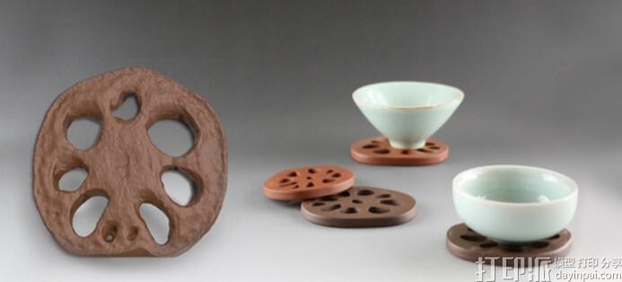 使用3D打印机打印出藕片后进行上色处理,即可得到一个创意的3D打印杯垫
