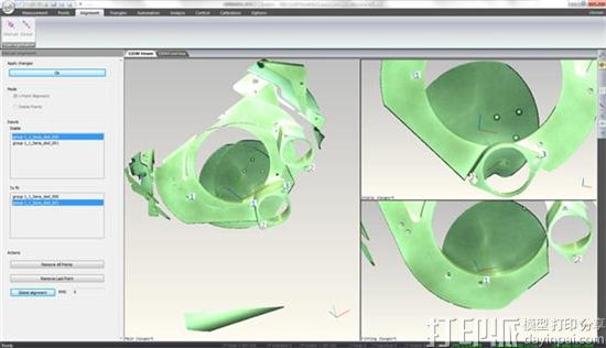 为此,他们使用了一个三点法,其中为点云选择了三个常用点。基于此,软件自动确定云的位置。目标是获得完全代表扫描对象的点云。使用旋转台显著简化了结果对齐的操作,因为它将其分成了表示每个侧面的两组点。