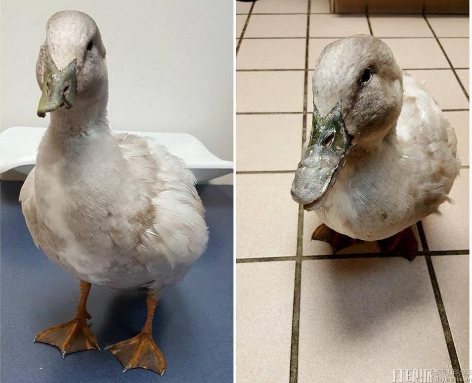 生活在密歇根州某农场的Blu是一只蓝灰色鸭子,是瑞典蓝色的混合品种。大多数情况下,他过着和平安定的生活,但是在1月份,他竟然被一头猪冲进来给拱了,这次遭遇让他的喙严重受损,但几个月后,Blu却恢复如初,开始看起来跟他在事发之前一样。Blu的主人罗斯·亚历山大(Alexander Alexander)在其被攻击之后带他去看兽医,现在,由于治疗团队合作,Blu已经加入了3D打印技术助力幸运鸭子的经典案例行列。