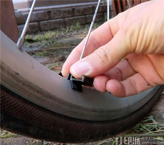 顺着自行车辐条将3D打印的夹子安装到轮圈上。接着,将LED灯带固定在灯带夹一侧的夹口处,完成后,用剪刀把多余的LED灯带剪断。最后,用胶带将电池组和连接灯带的电线固定在辐条上。此外,如果使用了两段灯条,则需要确保电池组在辐条两侧保持平衡。虽然这不是最好的解决方案,但是就目前来看,效果还是不错的。