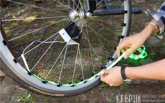 最近,一位网名叫Fungus Amungus的美国创客,用3D打印的夹子和LED灯带装饰的车轮,为喜爱夜晚骑行的自行车爱好者们带来了非常酷炫的骑行效果。