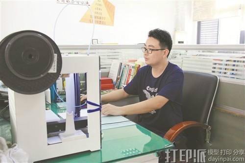 来到老师的办公室,他正在电脑前工作,时而摆弄着桌上的3D打印机,时而在纸上写写画画,他正在构思3D打印机中的图案,为西藏的孩子们准备小礼物。