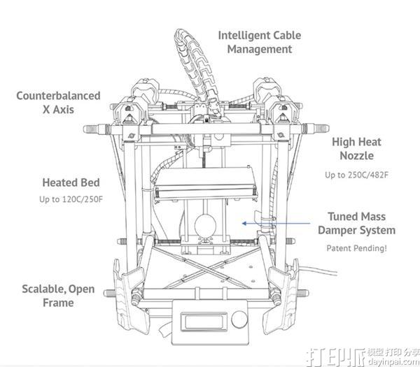 这是一款低成本的FDM 3D打印机,承诺“拥有比其更昂贵的打印机上的最佳功能”和“成本更低的设计创新”,据说比同价位打印机快三倍,有许多有用的功能,如专利待决的“质量减震器”,用于减少打印过程中的振动和保持精度。