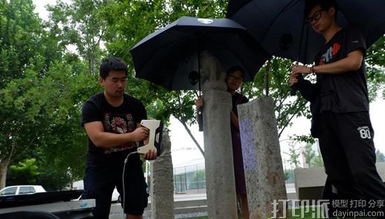 由于夏天光照强烈,为了避免强光环境对扫描的影响,同学们很机智地想到了打伞的方式。