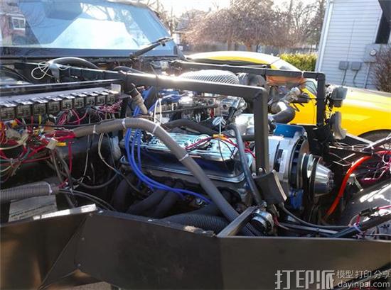 然后,他根据改装后的皮卡内部结构,以游戏中的疣猪号战车为原型,绘制了战车车体和一些配件的3D模型,再通过3D打印制造出来。