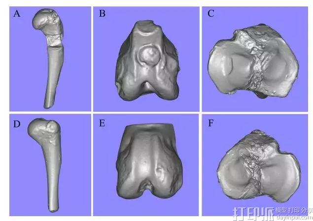 本三维模型(包括健康模型和疾病模型)后,通过运算获取缺损部位的几何模型。然后将目标模型导入生物3D打印机进行打印,最终缺损的长骨与软骨模型均成功得到修复。
