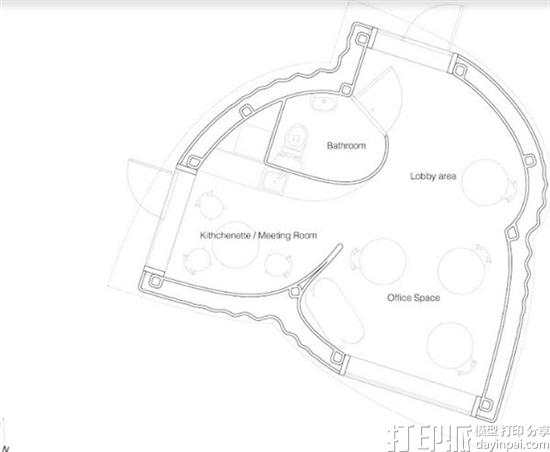 这栋定制建筑展示了3D打印的灵活性。受有机结构启发,它呈现出一个定制的“涟漪效应”。此外,它的墙呈弧形。“使用传统建筑技术,任何有机或非直线的形状都是一个挑战,无论从技术还是成本上看。我们的这栋3D打印建筑不包含任何直的线条或墙,窗户和门除外。3D打印让低成本地自动建造有机形状成为可能。除了3D打印墙外,这栋建筑的部分地基也是3D打印而成的,”3D Printhuset说。