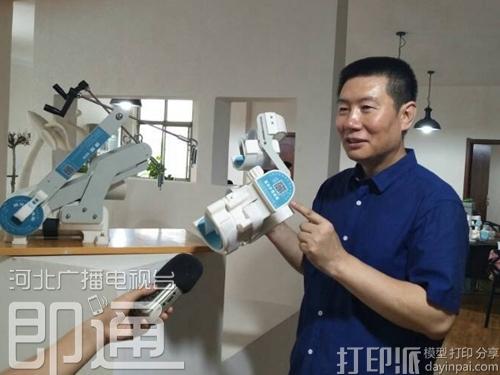 走进河北大艾智能科技股份有限公司展厅,创始人田野把一套用3D打印机制作的关节康复器带到手臂上,向记者自豪的介绍,这套设备已经应用于省三院的康复科,它可以解决患者关节由于撞伤或者手术后,挛缩或者僵硬的医学难题。