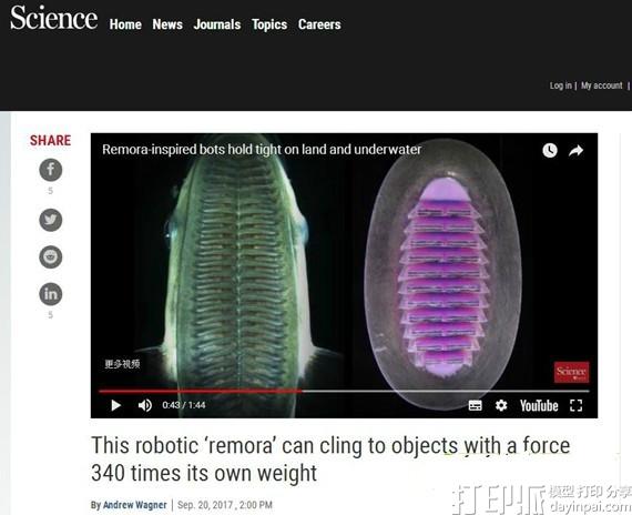 看到这样一张图片时,文力正在从事3D打印鲨鱼皮的研究。他的目光立刻被鲨鱼身上这种体态奇特的小鱼吸引住了。“这种‘搭便车’行为最大的优点,就是能有效减少运动消耗的能量。”文力回忆,一直从事仿生软体机器人研究的他当即对此产生了兴趣,并隐约感到其中存在巨大的应用空间。他当即在谷歌上搜索了关于yin鱼的吸附机理和仿生应用研究,发现“基本是一片空白”,这一年是2013年。