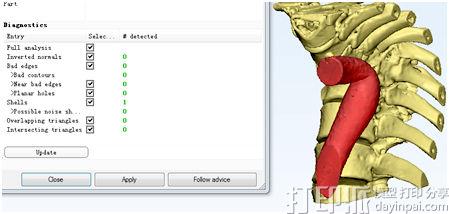 在整个过程中,东方医院外科团队与三的部落工程师紧密合作。首先,三的部落工程师将这名患者的二维CT影像数据通过专业软件进行阈值分割提取出患者的病变部位,并转化为可3D打印的三维数据,最终通过polyjet 3D打印技术将数据由虚拟变成实物。1:2真实还原了患者病变部位的模型。而后,外科团队通过对打印模型练习研究,在手术过程中切除病变椎体时成功避免触碰到主动脉,以大大降低手术风险。