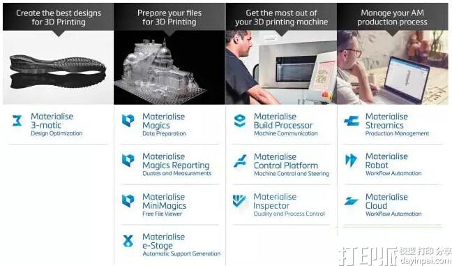 Materialise(纳斯达克股票代码:MTLS)将其超过27年积淀的3D打印经验融入一系列软件解决方案和3D打印服务中,成为3D打印行业的中流砥柱。玛瑞斯开放而灵活的解决方案,使得包括医疗保健、汽车、航空航天、艺术设计以及消费品在内的广泛行业领域的用户从中受益,共同构建让世界变得更健康、更美好的创新性3D打印应用。玛瑞斯总部位于比利时,分支机构遍布世界各地,同时拥有行业内顶尖的软件研发团队和世界闻名的3D打印工厂。Materialise于2005年开设其中国代表处,从此活跃于中国市场,致力于向医学及工业领域提供3D打印软件解决方案。2014年12月,其中国全资子公司——上海玛瑞斯三维打印技术有限公司正式成立。