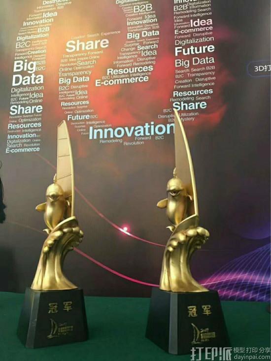 据了解,本次大赛共制作了100多个奖杯,由威客三维负责设计、打印和上色后处理,采用SLA光固化工业机3D打印而成。