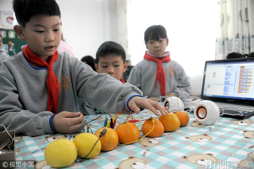 11月20日,在济南市官扎营小学,济南天桥区首届科技节在此举行。学生们现场展示了3D打印美食、用水果演奏的乐器,熟练操控无人机以及平衡车,还利用电脑编程遥控机器人跳舞,以及用机器人写字和搬东西。