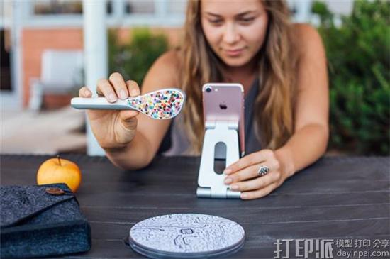 Yeehaw魔杖除了有上面所有的基于增强现实的数字刷,还包括所需的Yeehaw应用程序和一个360°旋转的旋转盘,这样你就可以从各个角度观察和设计你所画的东西。最终画出的东西都可以用3D打印机打印出来。