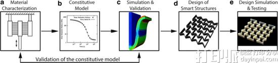科学家使用Stratasys Objet500 Connex3 3D打印机来制作必要的超常材料,用VeroWhitePlus RGD835制造。他们测试了四组不同的参数:玻璃化转变温度Tg;完全松弛的模量;热膨胀系数(CTE);不同温度下储能模量的频率扫描。然后进行三点弯曲实验以测试形状记忆,并与使用了相同材料的其他仿真模型进行比较。