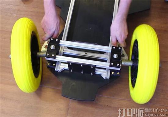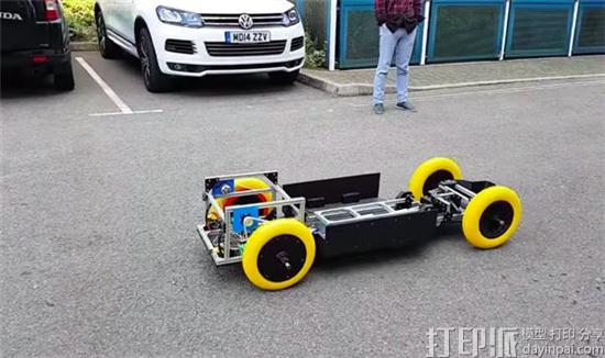 詹姆斯还特别根据轴承的大小定制了四只直径为40cm的车轮,以及由枢轴等3D打印组件组成的前转向总成。