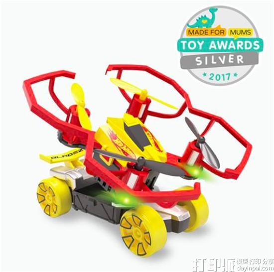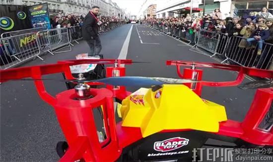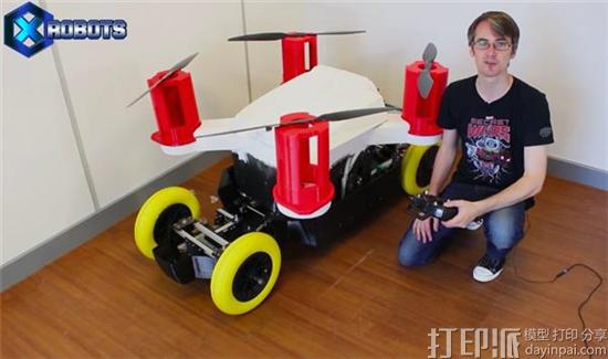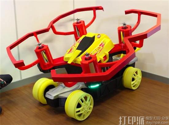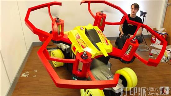 詹姆斯还为它配备了转子和旋翼,并且用1千瓦的电机来为旋翼的旋转提供动力。此外,用于连接四个旋翼的中心位置的外壳是用PVC板制作的,而下面的支架以及装饰件则都是用3D打印制作的。不过,无人机的外观设计只是为了用于效果展示,它并不能让这款3D打印的赛车飞上天。