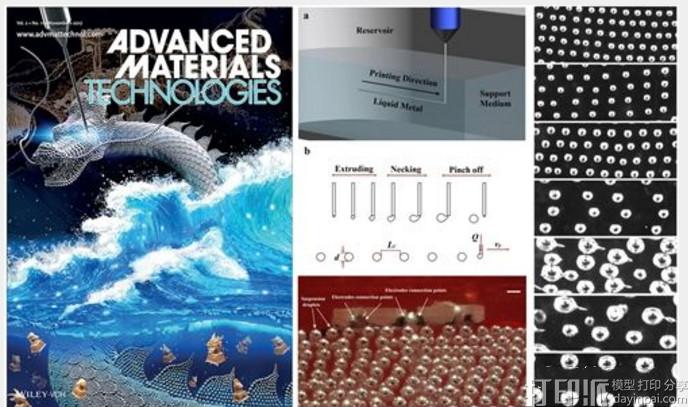 据了解,近日,中国科学院理化技术研究所低温生物与医学实验室首次提出“液态金属悬浮3D打印”的概念和方法,可在室温下快速制造具有任意复杂形状和结构的三维柔性金属可变形体,并用于组装立体可拉伸电子器件。相关研究成果作为封面文章发表在Advanced Materials Technologies上。