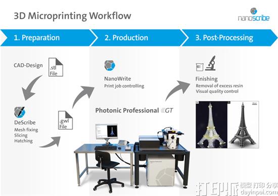 德国Nanoscribe公司是一家专门从事纳米、微米和中等规模3D打印的公司,将其用于制造微型塑料部件的“世界上最高分辨率的3D打印机”Photonic Professional GT与传统的连续生产技术相结合。