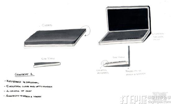 卢卡斯和安娜首先根据需要添加的笔记本零部件绘制了多款草图,确定了最终的设计方案。接着,他们把笔记本的外壳以及键盘的草图导入到了Fusion 360 3D建模软件,完成了建模设计,并使用树脂材料进行了3D打印。