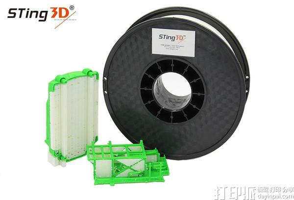 据悉,sting第一代水溶性支撑材料,极易溶于水,用户反映拆封后在保存方面存在问题。例如:吸潮迅速软化,影响打印,关键是造成大量浪费,有些材料一卷只能用一次。其次,材料以其软化点低等原因,材料容易结块。