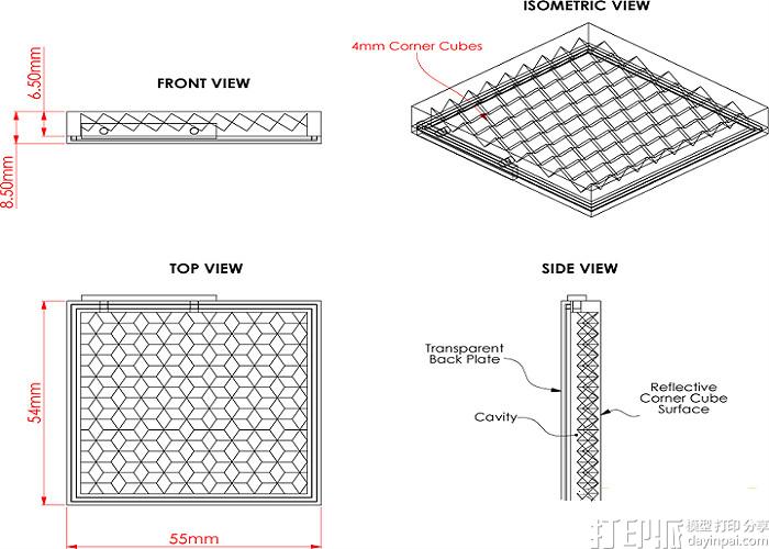 特拉华大学的研究人员已经将研究成果发表在光学社会期刊光学快报上,题为《对3D打印光流体智能玻璃原型的评估》,并使用Stratasys的Objet30 Pro 3D打印机和光敏树脂VeroClear制作出了可重复回射的结构。