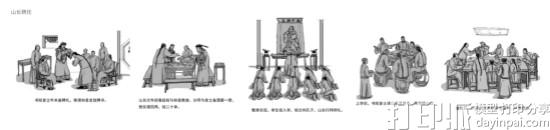 首先,余楠老师根据渌江书院对山长聘任仪式的描述,创作出微缩场景的设计稿。仪式主要包括五个部分,这也是在当时书院正式聘请一位山长的流程:
