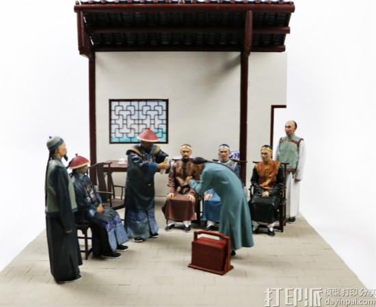 广州美术学院雕塑系的余楠老师团队就将现代多媒体手段应用于艺术创作过程中,利用先临三维的3D扫描和3D打印技术,制作了湖南渌江书院的山长聘任微缩场景。生动诠释出“晚清中兴四大名臣”之一的左宗棠被渌江书院聘任为山长的聘任仪式,向中国珍贵的书院文化与重师之道致敬。