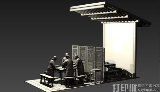 除了《山长聘任》的微缩模型,余楠老师还结合3D技术为渌江书院制作完成了多尊雕塑,包括《左宗棠》、《英雄侠女》、《左宗棠与陶澍彻夜长谈》等。