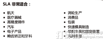 Vaupell公司使用3D Systems的QuickCast®服务,通过3D打印SLA技术直接打印原型进行熔模铸造,不需要制作蜡模所需的工模具,不需要制作蜡模,仅需传统手段的一部分成本和极快的速度就能制作出客户所需的零部件。因为航空市场往往需要小批量复杂度高的零部件,QuickCast服务十分贴合航空市场的需求。