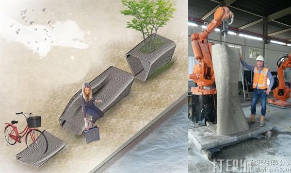 哈勒姆居民和游客有机会看到去年9月在现场3D打印的凳子,自行车架和播种机,现在可以自由使用现代混凝土装置。