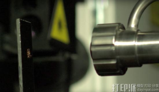 十月,Ajdelsztajn的团队加入了第二个机器人手臂,一个手臂拿着这个部分将其移动到一个精确的位置,而另一个手臂则将冷喷金属喷到它上面。