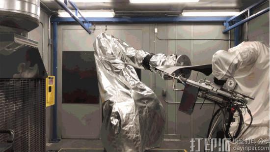 机器人拥有12个自由度的空间,可以倾斜和倾斜到不同的方向,使过程更加精确。该装置已被用于成功制造喷气发动机的翼型。