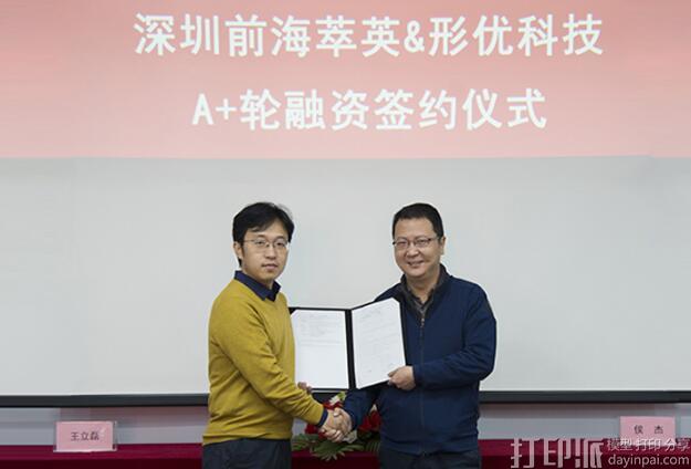 2017年12月19日,形优科技完成由深圳前海萃英领投的千万级A+轮融资,据了解,A轮融资将用于夯实广州二期高质量样件交付中心及北方运营中心与北区样件交付中心的扩充,完善升级数据信息化平台建设、高性能3D打印设备及质量检测设备引进等核心能力的提升,为客户提供更多类型的材料选择及功能性测试模型交付效率与保障。