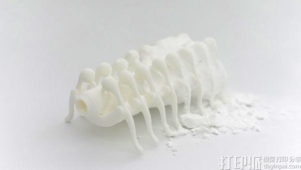 一旦完整的CAD模型完成后,设计师将其发送到选择性激光烧结(SLS)3D打印机,在那里从尼龙粉末材料的床层上逐层打印。 一旦印刷完毕,Sugihara只需将所有额外的尼龙粉末去除,然后在指定位置安装一个直流电机,这样就可以使印刷生效。