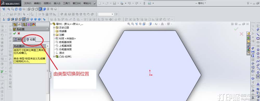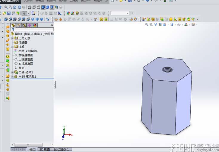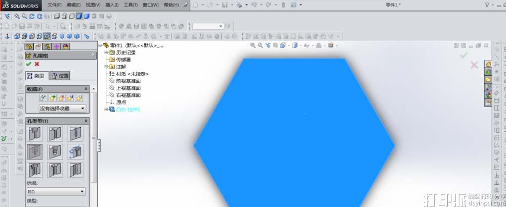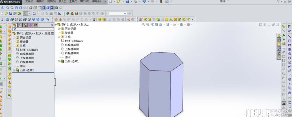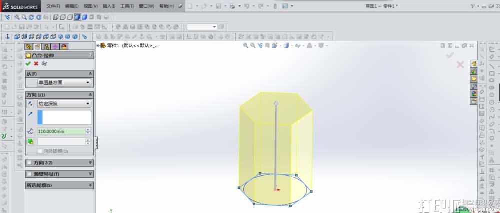 3、在六角钢的草图上拉伸,拉伸出实体,如下图