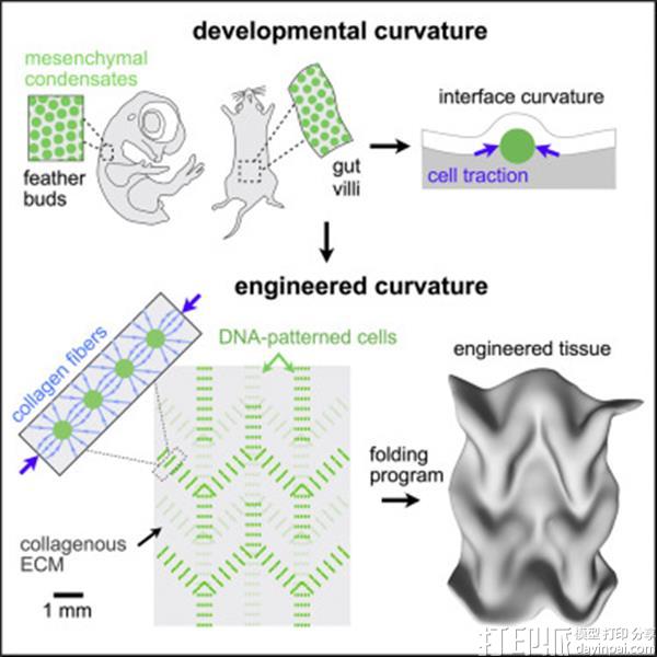 3D打印技术已经在让科学家从人类或动物细胞创造合成组织方面取得了长足的进步。但即使是最先进的生物打印机,也往往不能成功复制根据发育规划生长的组织的关键结构特征。人体组织中的自然褶皱,例如,帮助我们发挥功能的许多弹性和皱纹部位,使用3D打印机不容易复制。