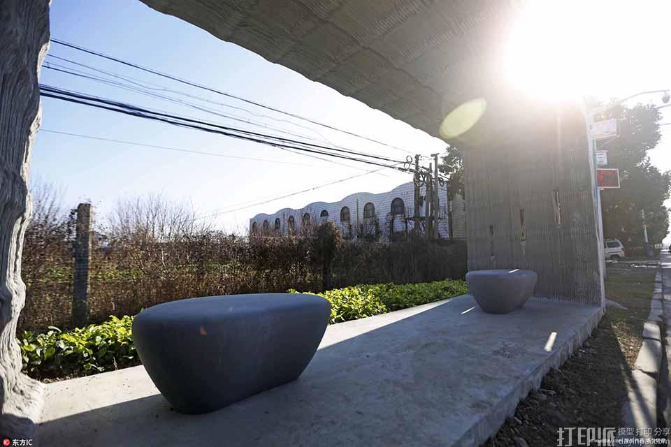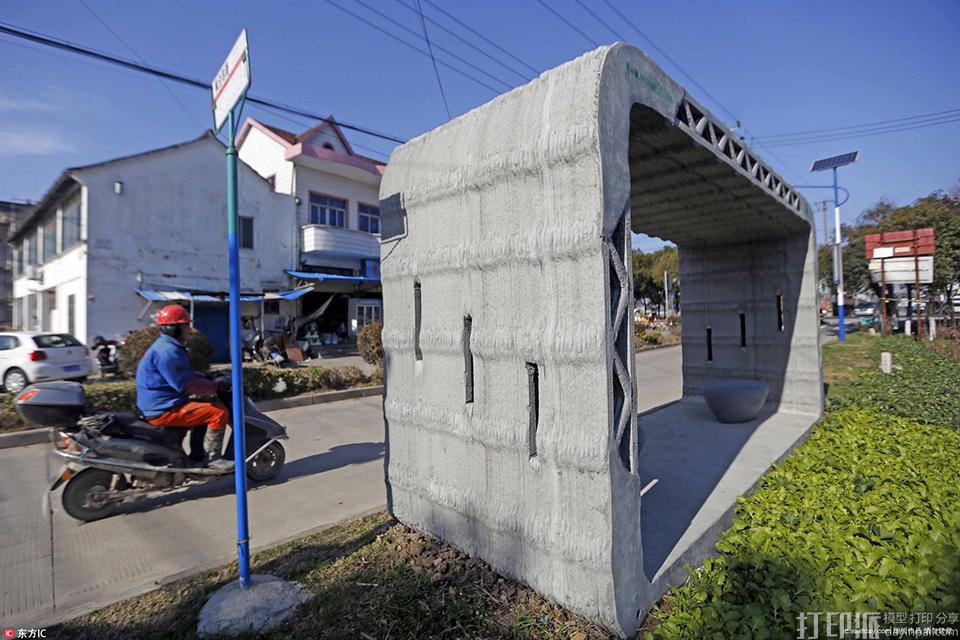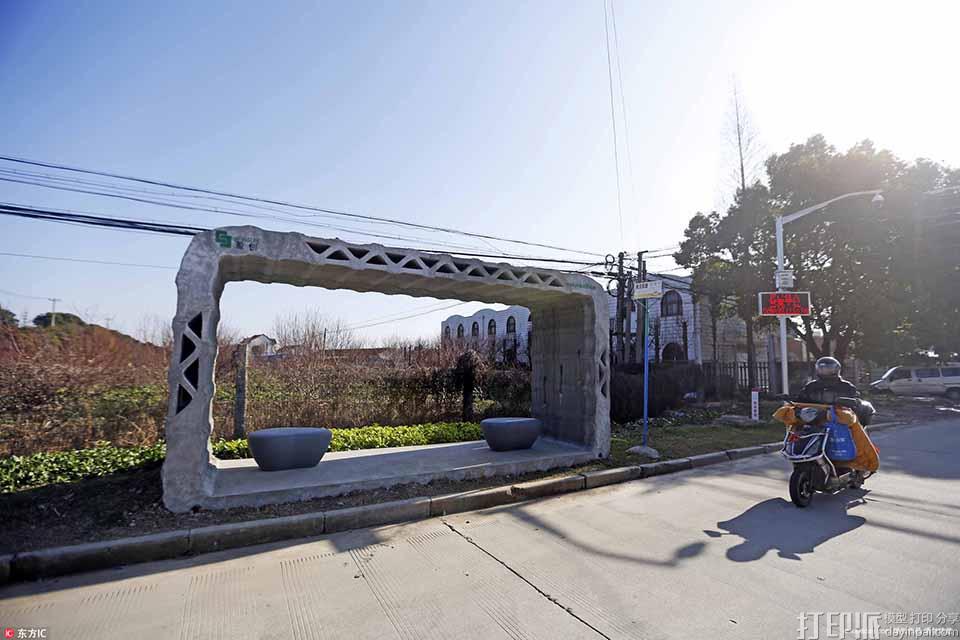 2018年1月9日,上海,近日,上海市金山区率先开启了“3D打印基建革命”,用3D打印的方式建造出全球首个公交车站,并在枫泾古镇投放使用。