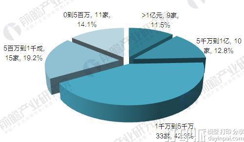 图表4:2016年中国3D打印行业企业竞争营收规模格局(单位:家)