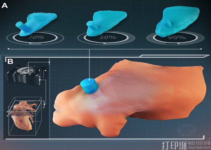 该论文摘要写道:“3D打印已被用于创建各种各样的解剖模型和工具进行程序规划和训练。然而,由于需要印刷材料的血液相容性和耐久性,所以永久的,软的心内膜植入物的印刷仍然具有挑战性。在这里,我们描述了通过3D打印和从体积渲染计算机断层扫描得到的充气硅酮/聚氨酯气囊的静态成型来快速成型患者特异性心血管闭塞器的方法。我们展示了这种方法的使用,该方法在制造用于闭塞左心耳的装置的制造中提供由高质量,耐用和血液相容性弹性体材料制成的定制植入物 - 已知几何结构高度可变的结构心房颤动患者中风的主要来源。我们描述了设计工作流程,特定患者左心耳封堵器的制造和部署,并且作为概念验证,使用3D打印的解剖模型,体外流动环和体内大型动物模型显示其功效。