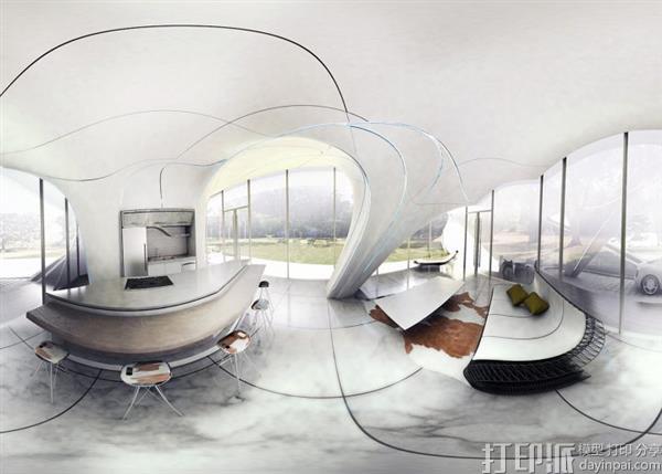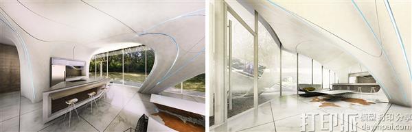 正如WATG在其网站上写道:“使用Branch Technology的自由形式印刷工艺,复杂的设计形式不再困难或昂贵。 在家里,复杂的外壳几何不仅在美学上有吸引力,而且在结构上是功能性的。 拱形结构为住宅提供了结构刚性,在整个平面图中使用了各种弹簧点,使结构能够承受屋顶荷载,并提供大型的开放式生活空间,以新的方式塑造结构,没有任何限制。