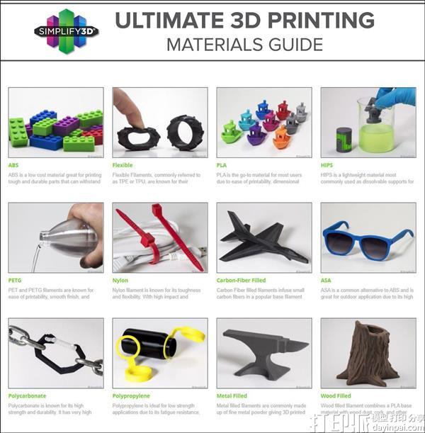 3D打印软件公司Simplify3D已经发布了关于3D打印材料的大量资源。资源包括选择材料的指导以及针对给定3D打印项目优化打印设置的提示。