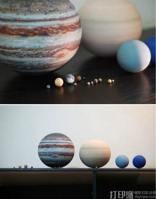 艺术家惟妙惟肖的还原了太阳系中各个行星以及一些主要卫星的模型,看起来很赞,在他利用3D打印技术制作的这些模型中,星球的表明甚至有轻微的凹凸感来更好的模拟星球的表面,非常精美。