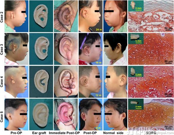 令人惊讶的是,这个过程大部分是成功的。对年轻患者进行不同时间的监测,最长的随访时间为两年半,其中四名患者在新耳植入后6个月时表现出清晰的软骨形成。其中三名患者耳朵的大小和形状与耳朵相反。