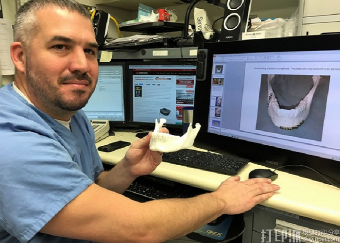 Gagnon解释说:“我接受CT扫描及其数字化表示,然后用其他软件重新整理所有的数据,Gagnon解释了最近手术的模型。 “然后,外科医生把金属板弯曲到这个模型,知道这是它应该是确切的大小和形状。 这样可以节省手术时间,因为他们可以使用这些预弯曲的钢板,并知道他们是正确的形状。 他们消毒他们,把他们带入已经准备好的手术。”