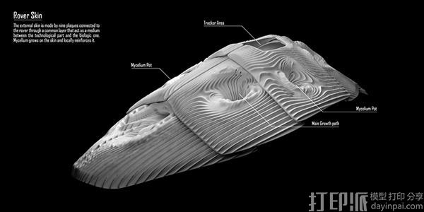 由多个3D打印部分组成的机器人凹槽外壳具有多种功能。 首先,外壳保护机器人内部的电子器件,其次,它起到“细菌生长的基质”的作用,可以有效地让机器人生长。