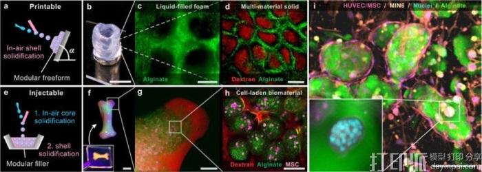 通过这种方式,可以在可打印材料内捕获活细胞。生成的生物构件以三维结构印刷,看起来像海绵,充满细胞和液体。这些3D模块化生物材料具有与天然组织非常相似的内部结构。许多3D打印技术是基于使用热量或紫外线的:这两种都会损害活细胞。因此,新的微流体方法在组织工程中是有前途的技术,其中通过使用患者的培养细胞材料来修复受损组织。