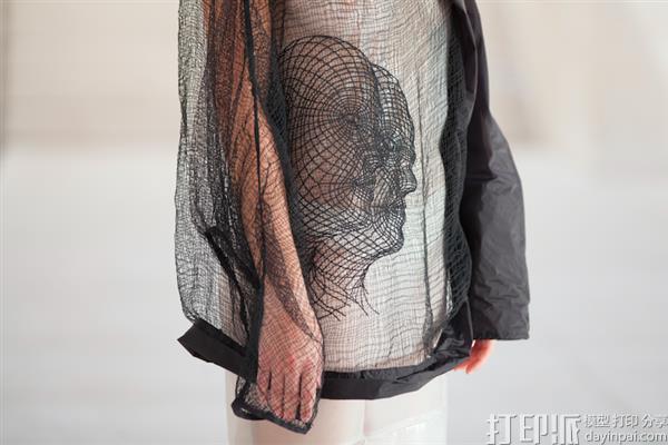 我们最喜欢的作品之一就是超大号的白色外套,上面突出了令人毛骨悚然的3D打印面。