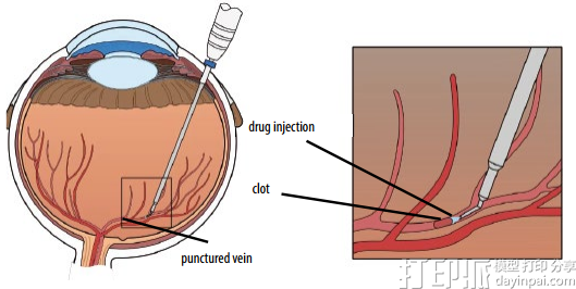 在猪视网膜上操作成功的插管工具已经测试。 尽管手术室在人体手术中的应用尚处于进一步的发展阶段,但手术室可供选择的方式有两种:独立模式或安装在机器人系统上。